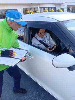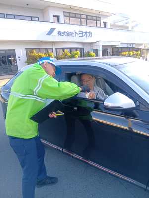 街頭指導に参加し、お声がけや社員の免許証確認等を行いました。